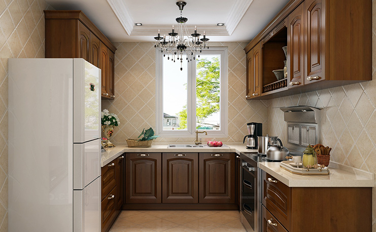 歐式古典櫥柜與現(xiàn)代家居相結(jié)合,以古樸紋路及羅馬柱設(shè)計,突出整體設(shè)計之感,整體以吊柜和地柜為主,即拉大的空間感,又有著非常實用的存儲作用。
